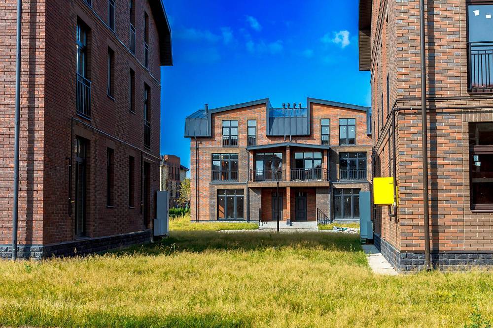 Торцевой таунхаус без отделки площадью 90 м2 с дополнительным мансардным этажом 45 м2 с полноценной высотой потолков. Боковая секция имеет земельный участок увеличенной площади. Все окна второго этажа и мансарды - французские балконы в пол. В помещениях много света, фасад решен в современном стиле Лофт. Материал стен - экологически чистый кирпич премиум-качества марки Porotherm. Фасад из керамического облицовочного кирпича Kerma Premium контрастных цветов и фактуры. Кровельная система кликфальц. Ламинированные под текстуру дерева стеклопакеты из ПВХ профиля. Больше преимуществ новой очереди поселка смотрите по ссылке.